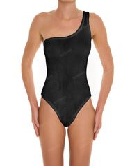 - Detail Feature: High-rise one-piece with asymetrical shoulder detail