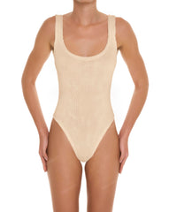 - Detail Feature: Tank one-piece with a scoop neck and Low back coverage