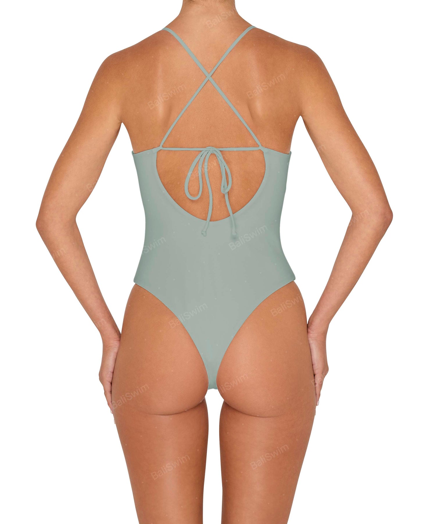 - Detail Feature: Cut-out one piece with custom hardware connector detail, high cut leg opening, adjustable straps