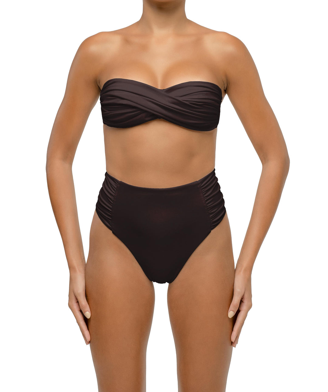 Embrace retro-inspired glam with high-waisted bikini bottoms BSWS-B127, BSWS-B126, and BSWS-B123, along with our one-piece BSWS-S68. These pieces provide a flattering fit that seamlessly blends vintage charm with modern sophistication.
