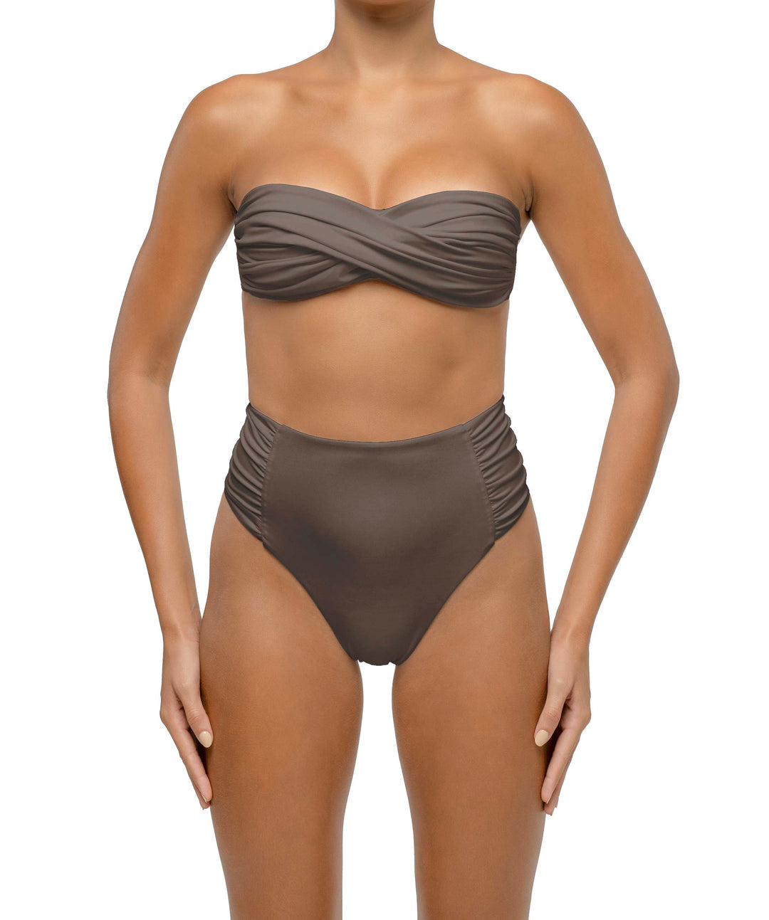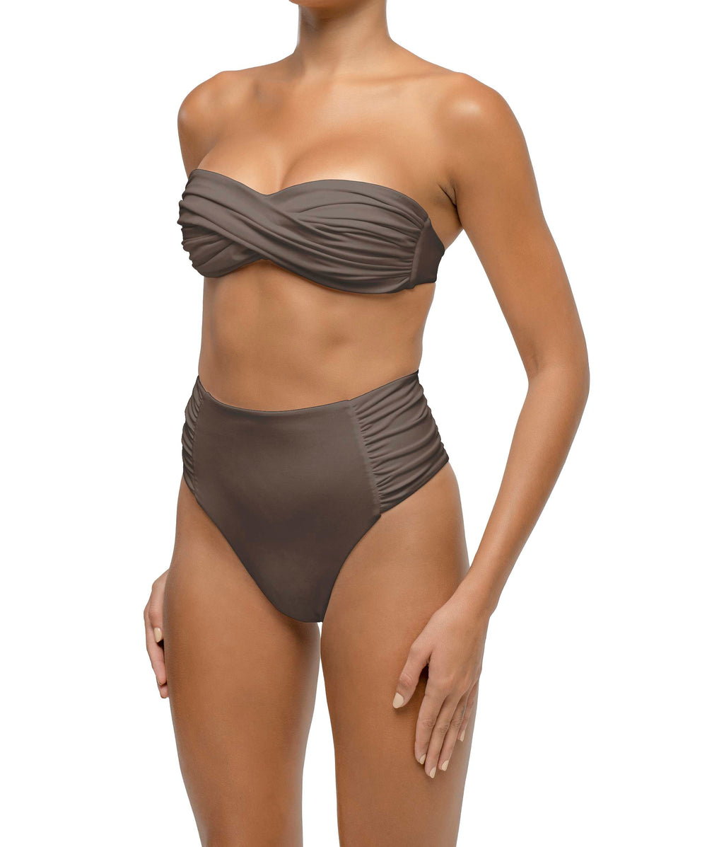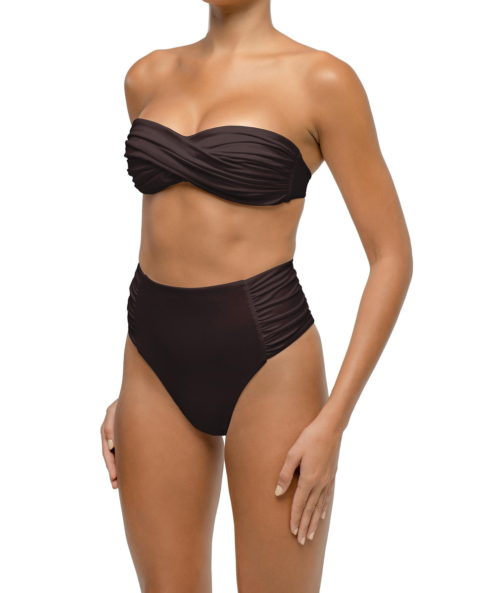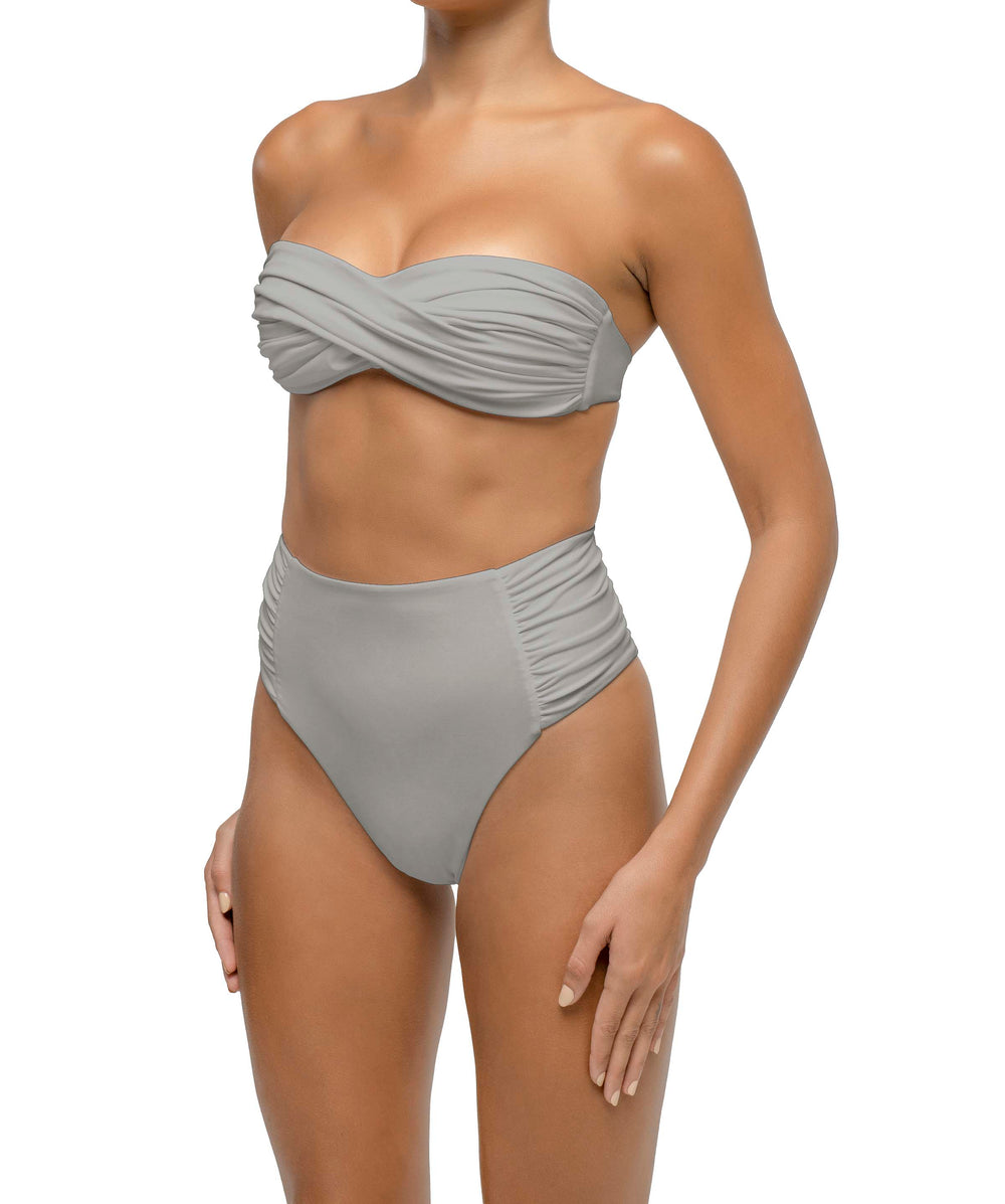 Side Shirred Paneled High Waisted Bikini Bottom
