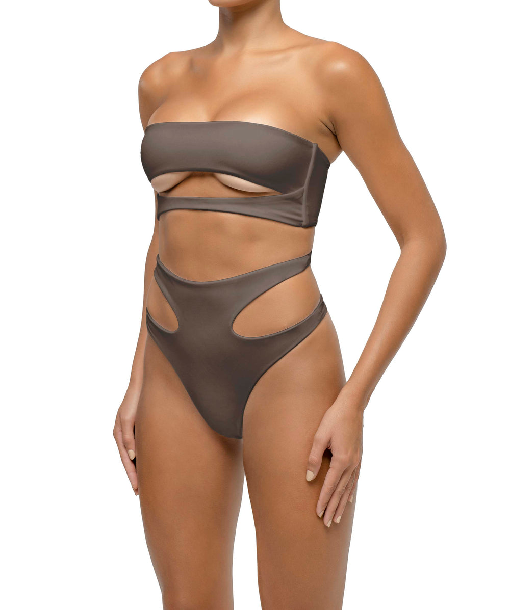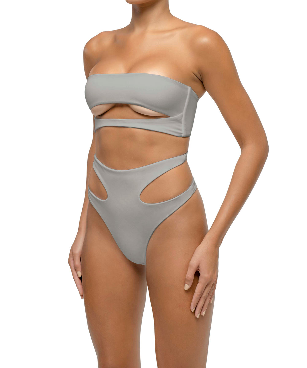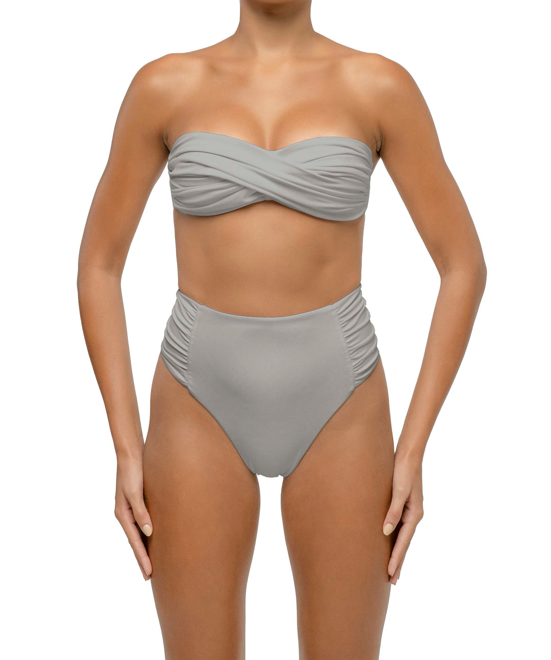 Side Shirred Paneled High Waisted Bikini Bottom