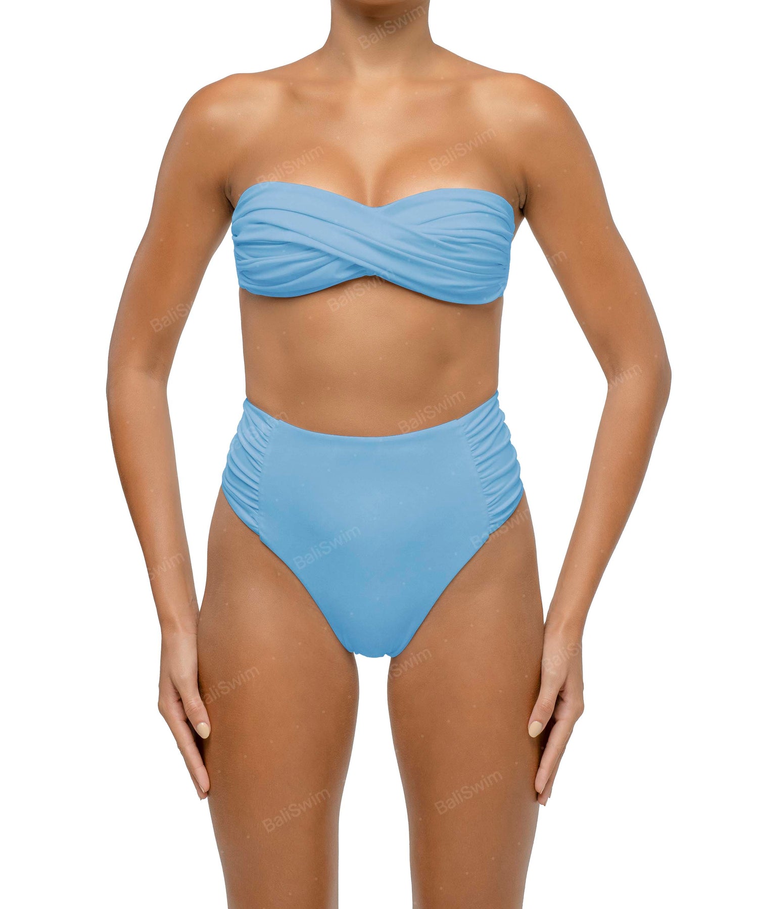 BSWS-B127 Side Shirred Paneled High Waisted Bikini Bottom