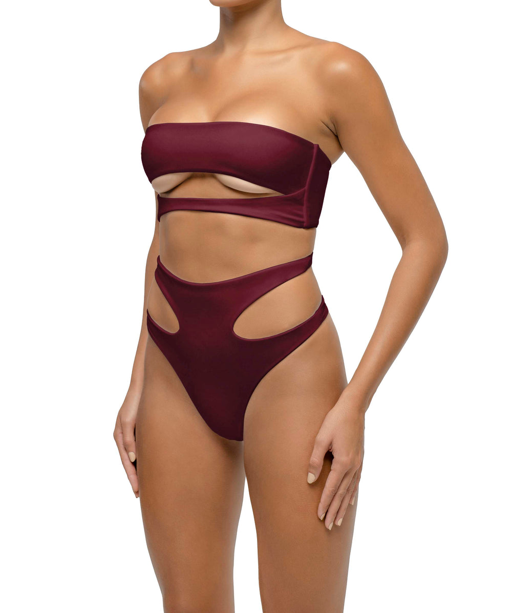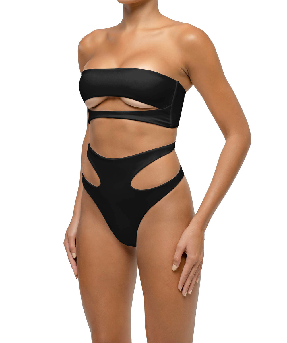 Asymmetrical Bandeau Side Cutout One Piece