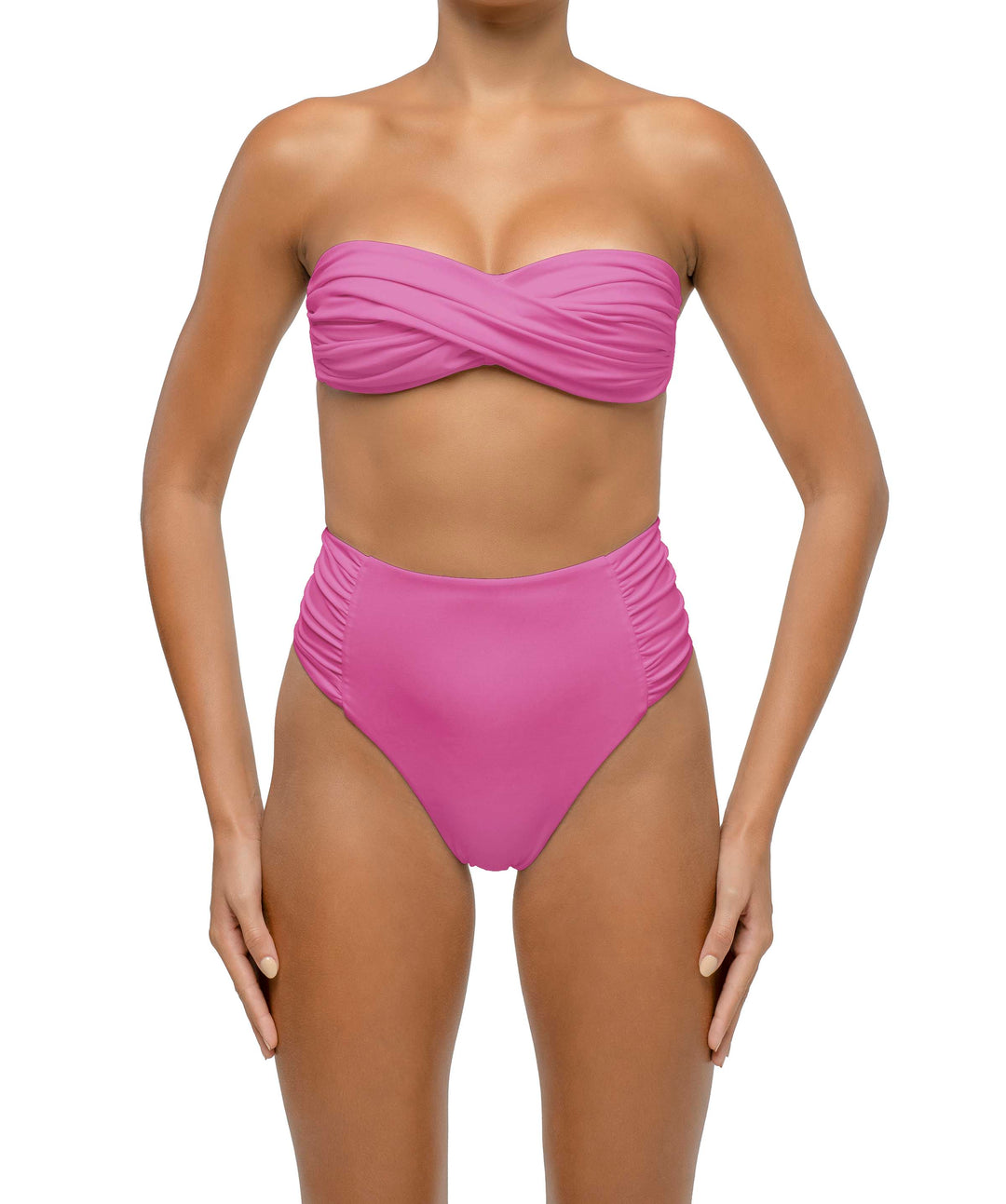 Embrace retro-inspired glam with high-waisted bikini bottoms BSWS-B127, BSWS-B126, and BSWS-B123, along with our one-piece BSWS-S68. These pieces provide a flattering fit that seamlessly blends vintage charm with modern sophistication.
