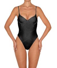 - Detail Feature: Classic underwire one piece with adjustable straps, high leg opening, back cut-out and back clasp