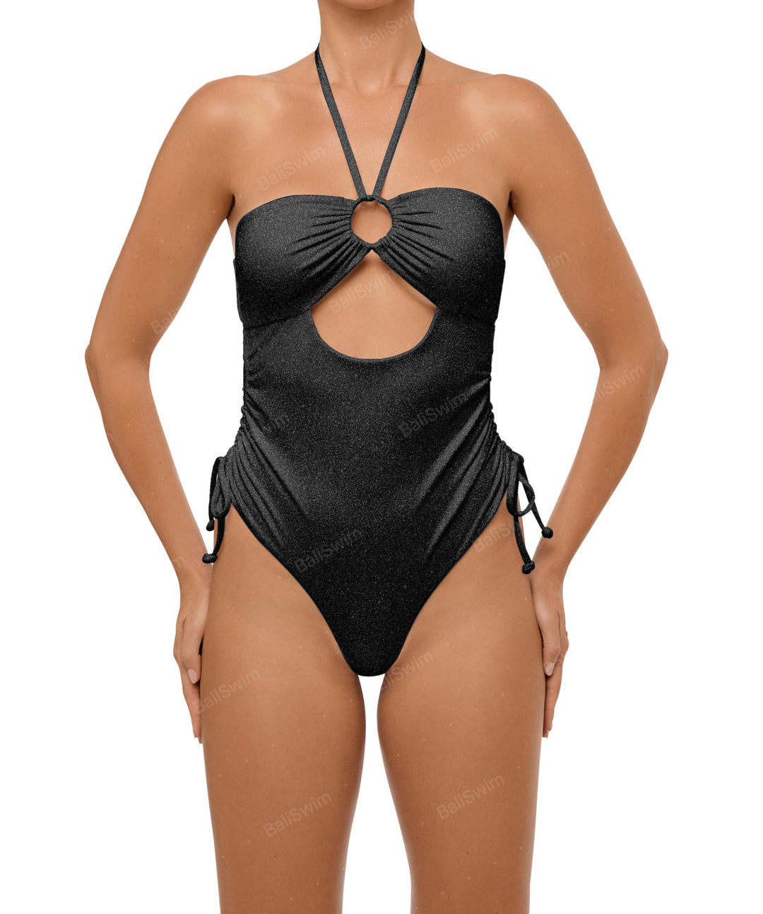 Asymmetric Cutout One Piece Color Black by Bali Swim