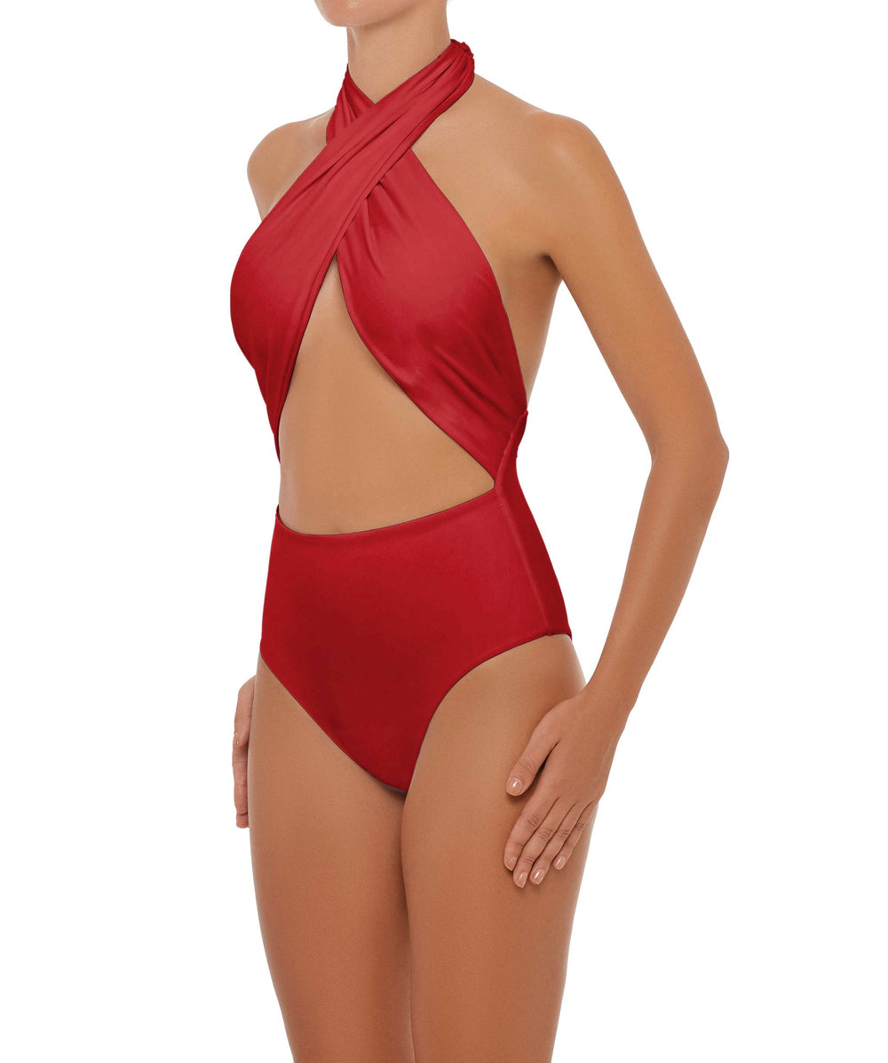 Plunge Neck Criss Cross One Piece