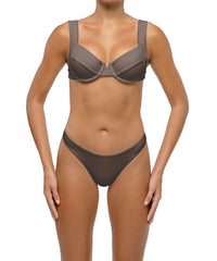 - Detail Feature: Basic bikini bottom, brazilian brief style, Curved waistline, Visible cover stitch, Mid-rise
