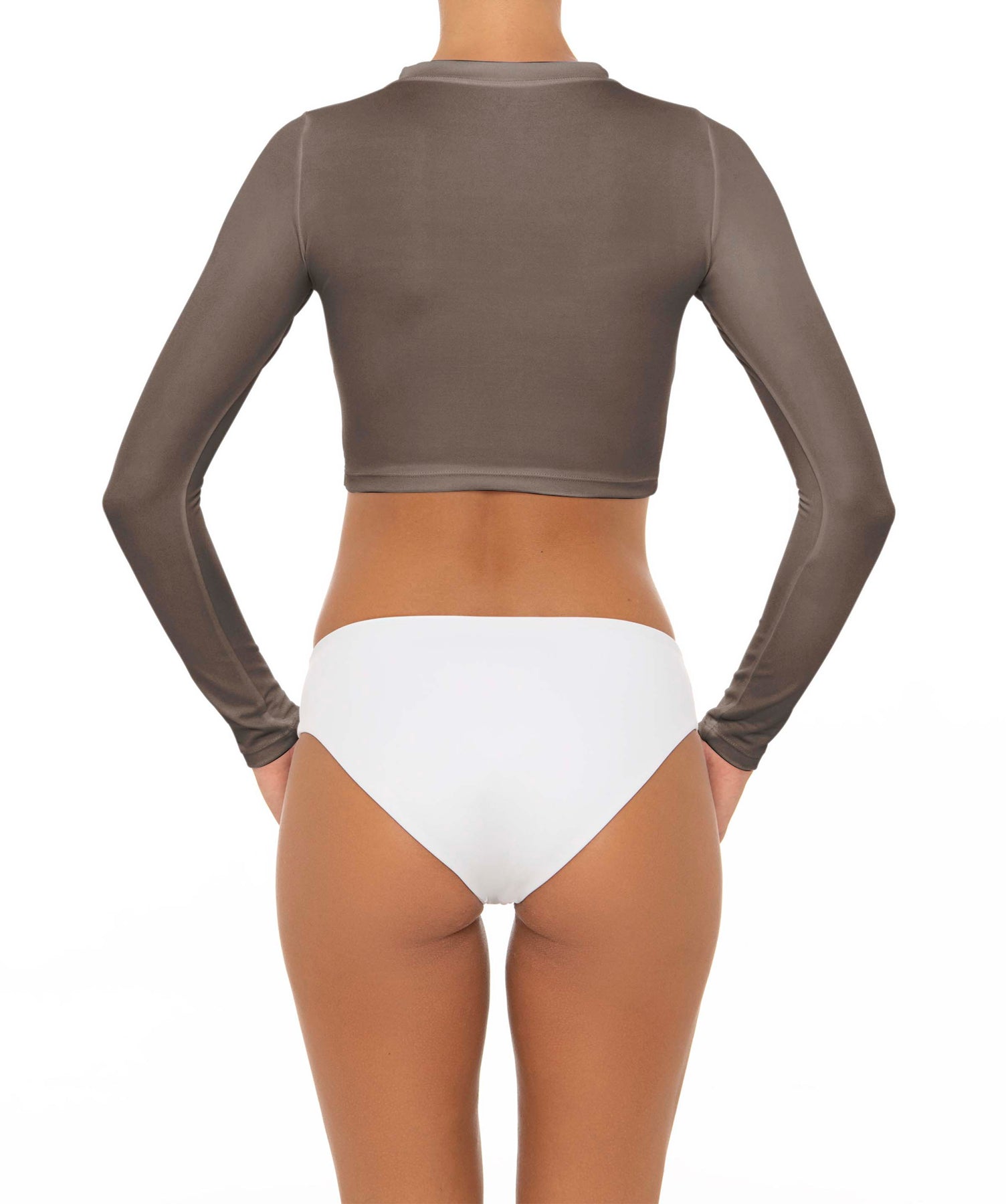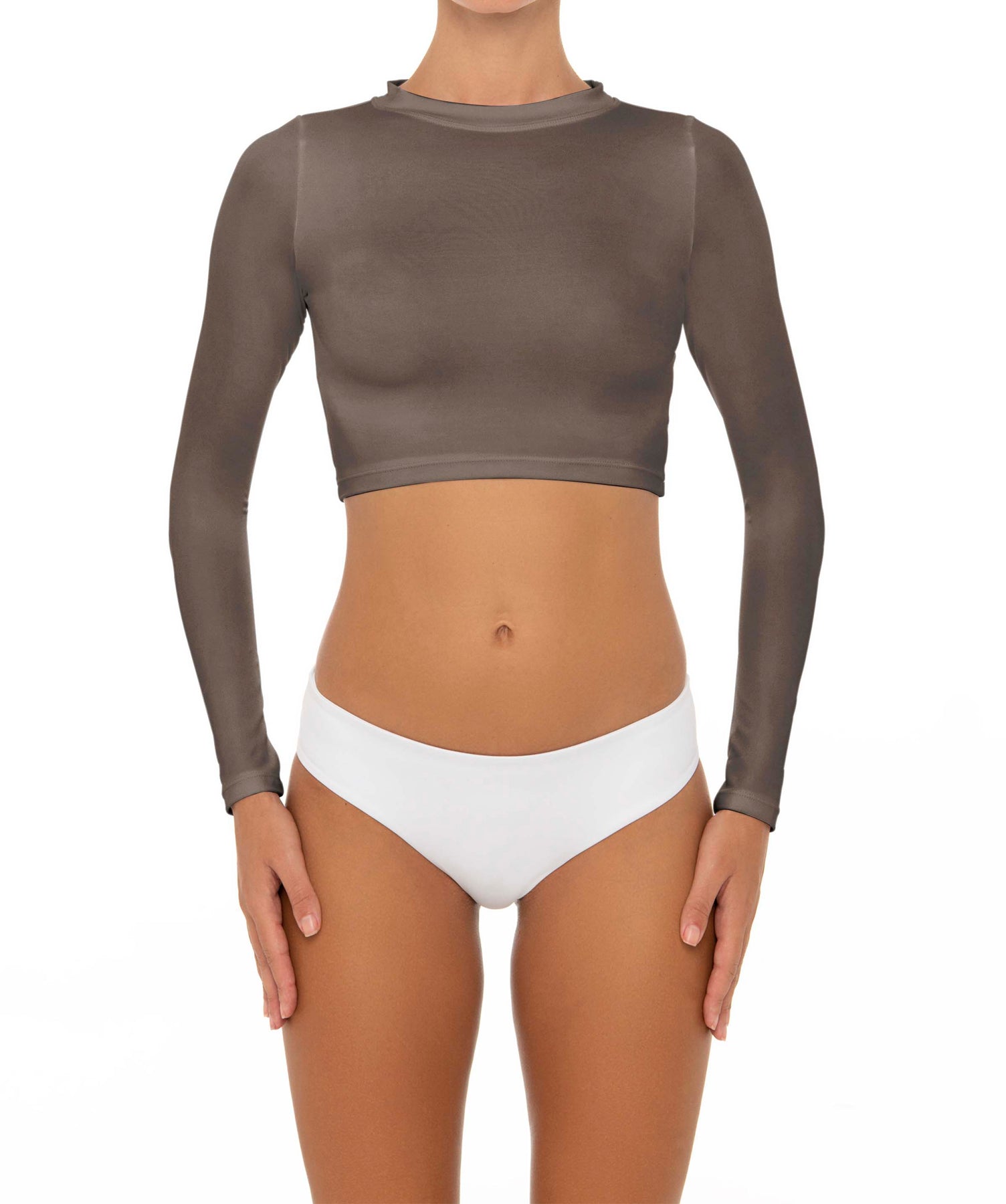 - Detail Feature: Cropped rash guard with long sleeves in a pull-on style