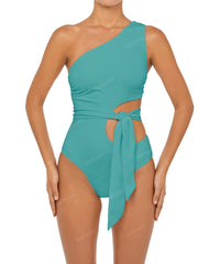 - Detail Feature: One shoulder one piece, Cut out detail, Removable sash