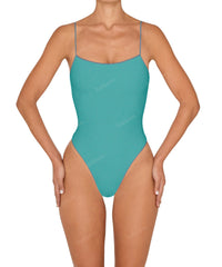 - Detail Feature: Square neckline one piece, with high leg opening, elastic corded straps, and baby lock stitch finishing