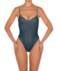 - Detail Feature: Classic underwire one piece with adjustable straps, high leg opening, back cut-out and back clasp