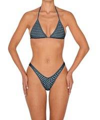 - Detail Feature: Triangle binding top with silver studs, adjsutable 8mm underbust straps
