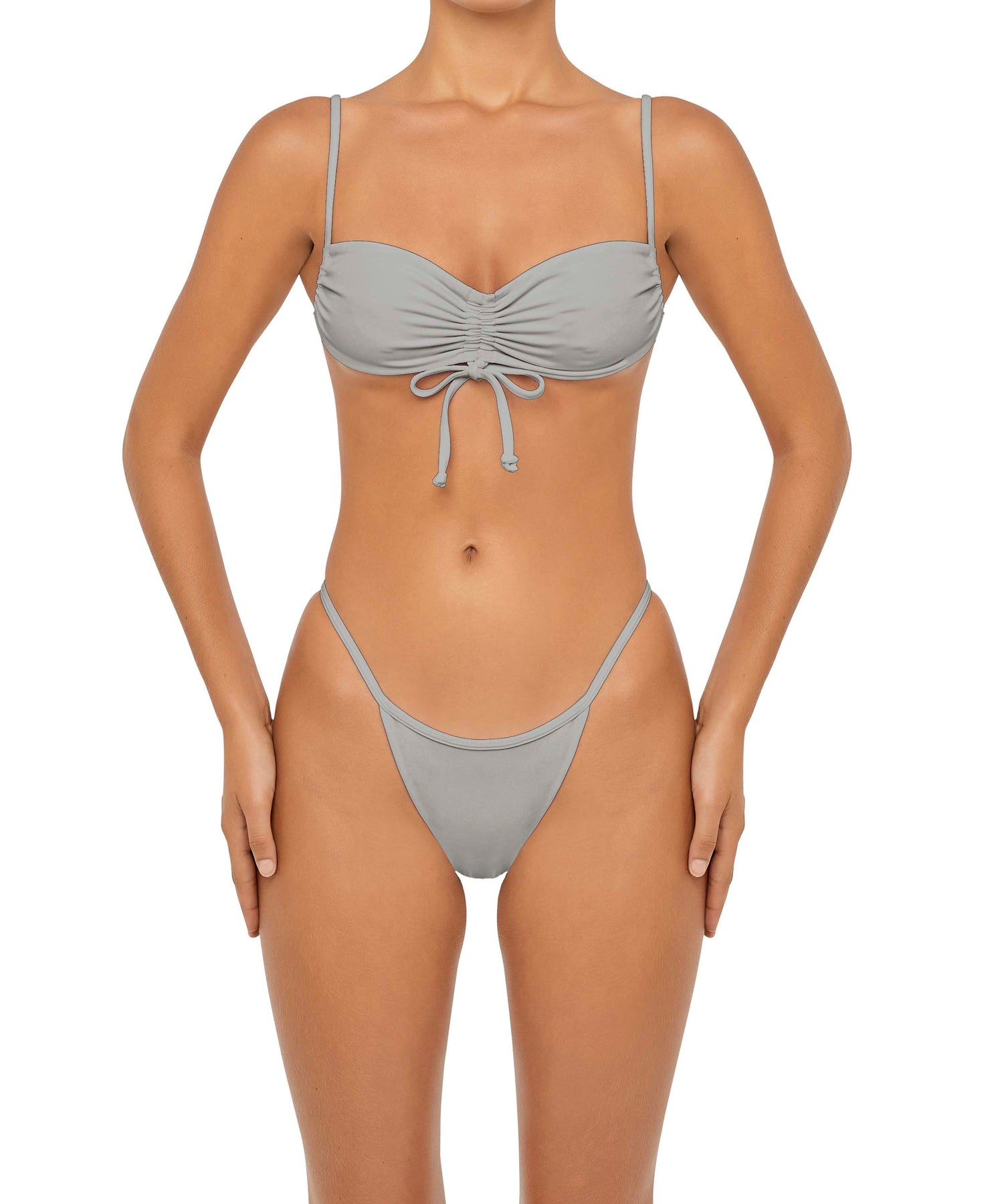 - Detail Feature: Adjustable Gathered bikini top, Adjustable tie closure, Adjustable side cup