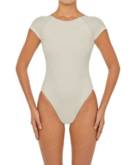 • Detail Feature: Short sleeves one piece, Raglan sleeves, Back tie closure, Low back