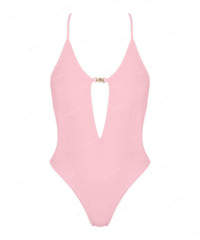 - Detail Feature: Cut-out one piece with custom hardware connector detail, high cut leg opening, adjustable straps