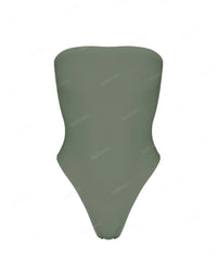 - Detail Feature: Classic strapless onepiece, high hip cut, silicon tape on the top bust to prevent slippage, and seamless finish