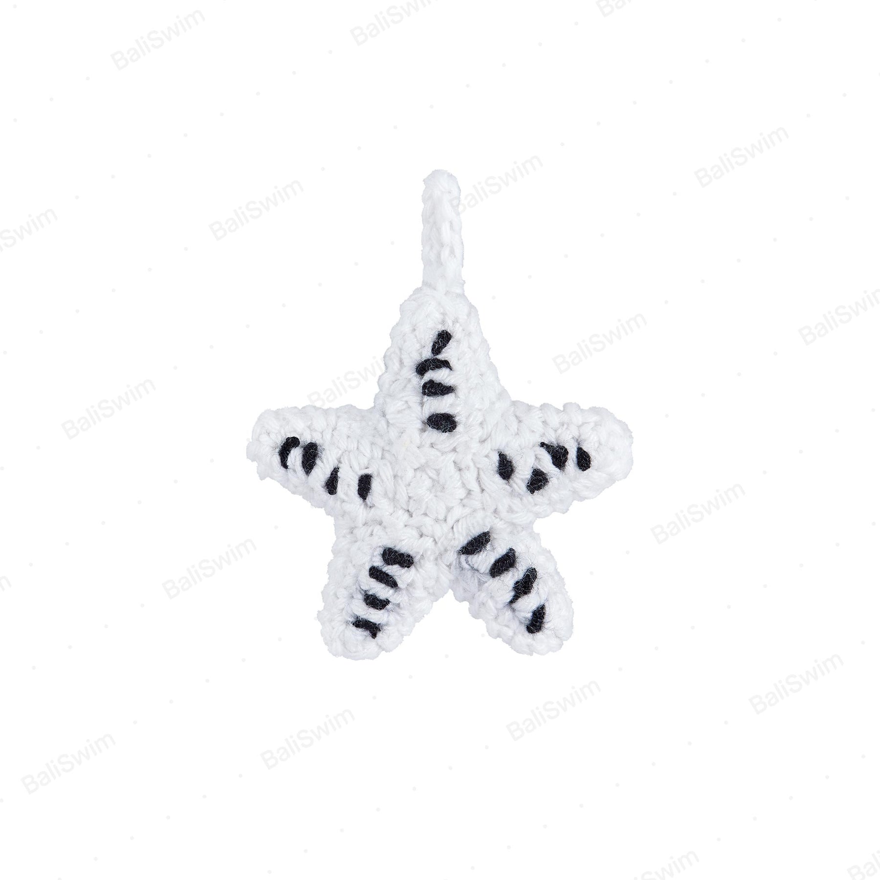 - Description: A delicate hand-crocheted trim designed as a starfish with five textured arms. Finished with a small loop in the same crochet material for easy application. The piece measures approximately 4–5 cm in length and width.