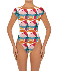 - Detail Feature: Short sleeves one piece, Raglan sleeves, Back tie closure, Low back