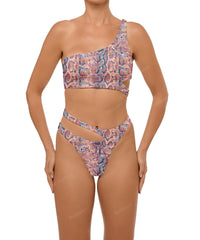 - Detail Feature: Asymmetric bikini top, Fixed shoulder strap, Side cut out detail, Pull on style