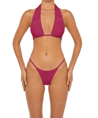 - Detail Feature: Halter bikini top, Adjustable underbust, Adjustable tie closure