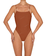 - Detail Feature: Straight neckline one piece, with resin ring details, high leg cut, seamless finishing, option fix straps/ adjustable