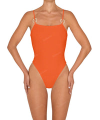 - Detail Feature: Straight neckline one piece, with resin ring details, high leg cut, seamless finishing, option fix straps/ adjustable