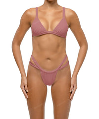 - Detail Feature: Tringle bikini top, Fixed shoulder straps, Double underbust straps, Adjustable tie closure