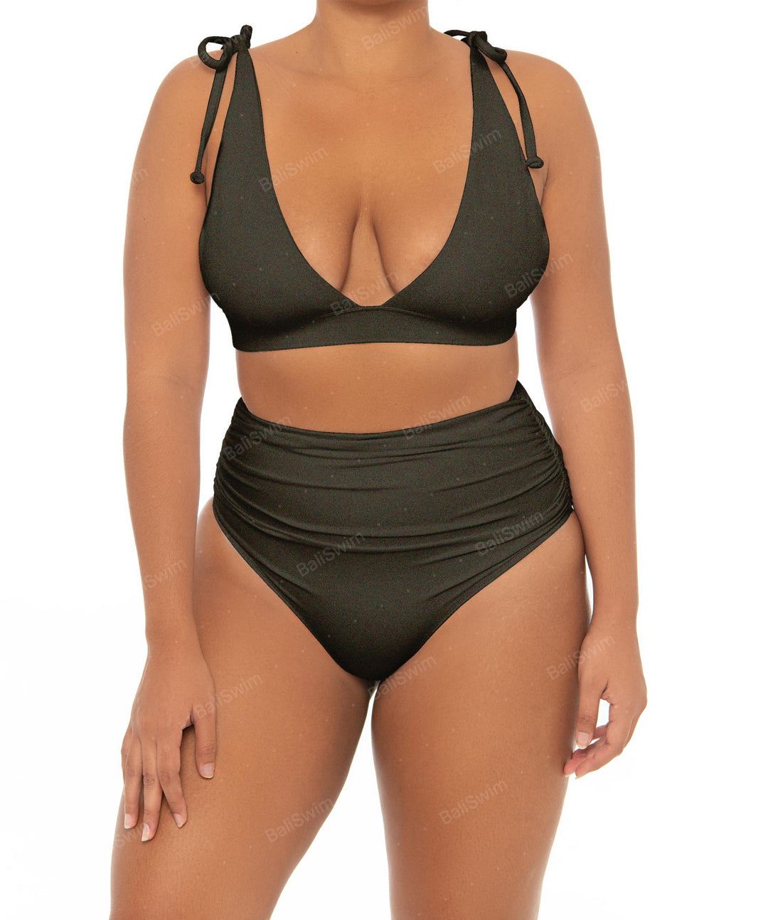 Side Shirred High Waisted Bikini Bottom