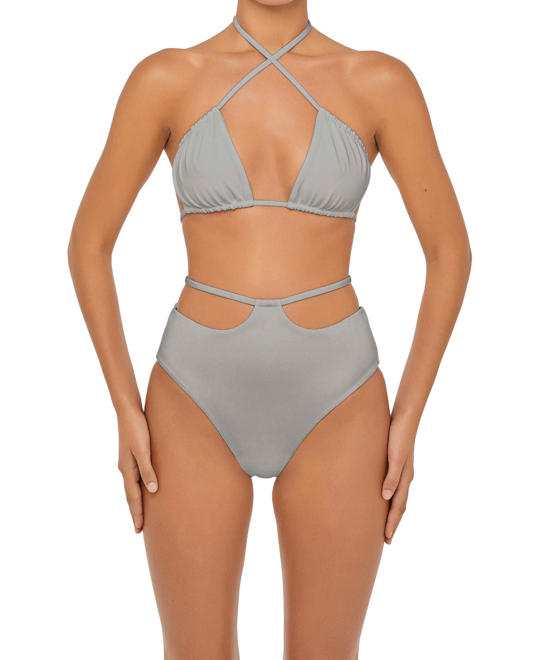 High Waisted Strap Cutout Bikini Bottom