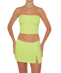 • Detail Feature: Swim skirt bottom, Skirt with basic bikini bottom attached, Slit detail