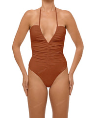 • Style: Ruched Halter One Piece
