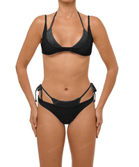 - Detail Feature: Double triangle bikini top, Adjustable halter neckline, Adjustable tie closure