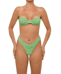 - Detail Feature: Underwire bandeau bikini top, Gathered bust detail, Clasp Closure