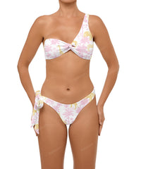 - Detail Feature: Asymmetric bikini top, Fixed shoulder strap, Front loop detail, Clasp closure