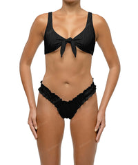 - Detail Feature: Plunge V neck bikini top, Front tie knot closure