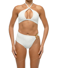 - Detail Feature: Halter bikini top, Bust cut-out detail, Twist detail, Pull on style