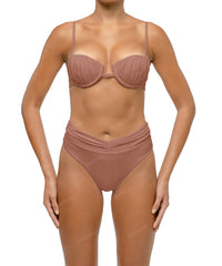 - Detail Feature: Balconette bikini top, Bust gathered detail, Fixed padding with underwire, Adjustable Straps, Clasp closure