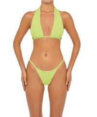 - Detail Feature: Halter bikini top, Adjustable underbust, Adjustable tie closure