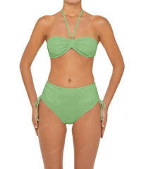 - Detail Feature: Bandeau bikini top, Adjustable halter ties, Gathered detail