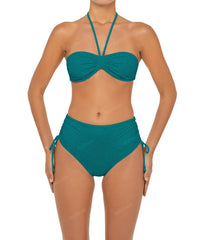 - Detail Feature: Bandeau bikini top, Adjustable halter ties, Gathered detail