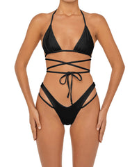 - Detail Feature: Triangle Bikini Top, Adjustable underbust, Halter ties, Adjustable wrap around straps detail