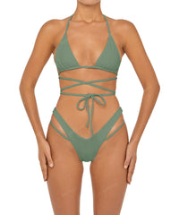 - Detail Feature: Triangle Bikini Top, Adjustable underbust, Halter ties, Adjustable wrap around straps detail
