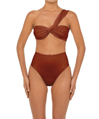 - Detail Feature: One shoulder bandeau bikini top, Ruched detail, Clasp closure
