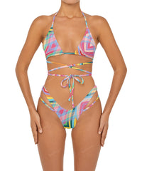 - Detail Feature: Triangle Bikini Top, Adjustable underbust, Halter ties, Adjustable wrap around straps detail