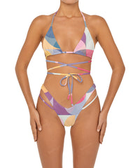 - Detail Feature: Triangle Bikini Top, Adjustable underbust, Halter ties, Adjustable wrap around straps detail