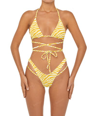 - Detail Feature: Triangle Bikini Top, Adjustable underbust, Halter ties, Adjustable wrap around straps detail