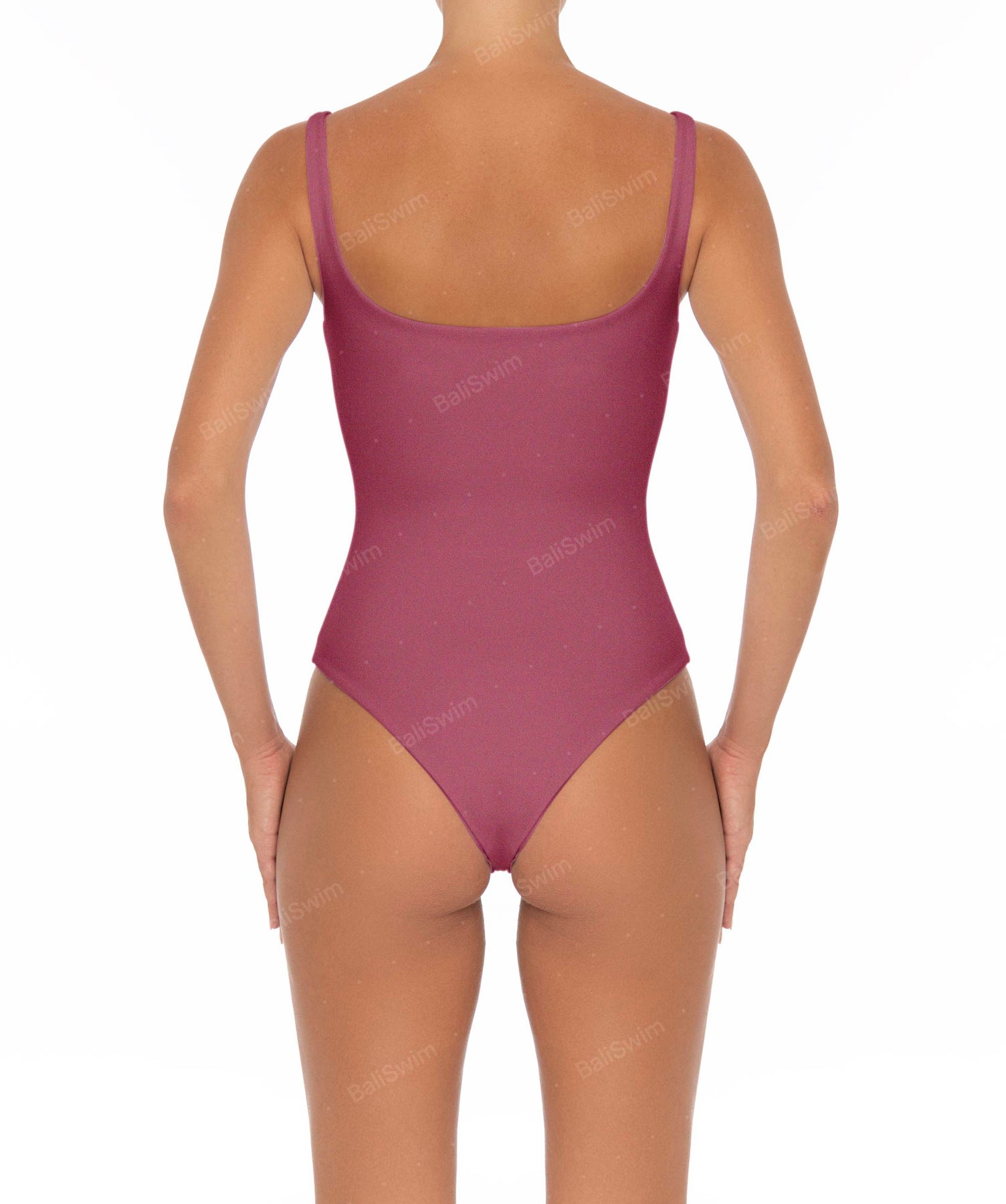 - Detail Feature: Tank one-piece with a scoop neck and a curved square back detail