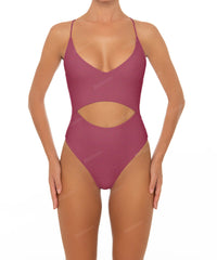 - Detail Feature: Peek a boo one-piece with a V-neck, cut-out detail, fixed crisscross straps, and a low back